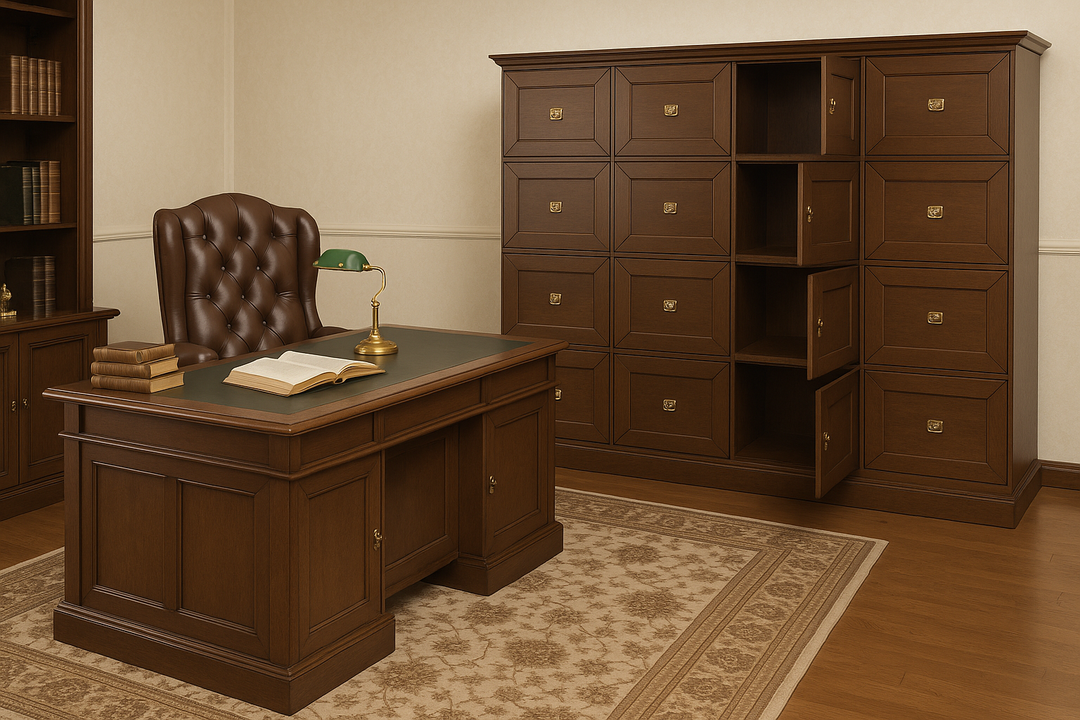 Progetti per studi eleganti ed ambienti di lavoro in legno naturale.
