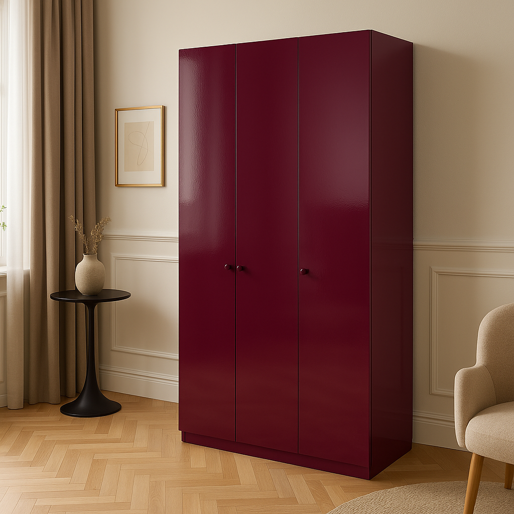 La finitura bordeaux lucida esalta il design sobrio e moderno, rendendola perfetta anche in ambienti contemporanei o classici rivisitati.