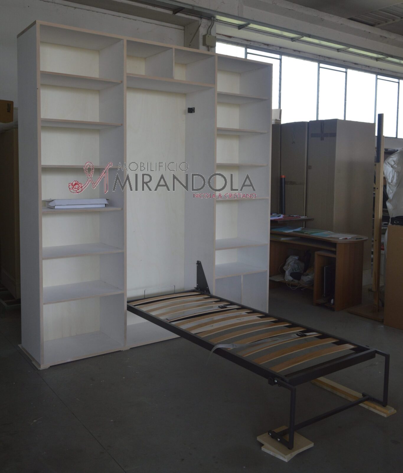 Studia, rilassati o accogli l’ospite dell’ultimo momento con l’armadio a ponte con letto singolo a scomparsa in legno massello di Mirandola Nicola & Cristiano!