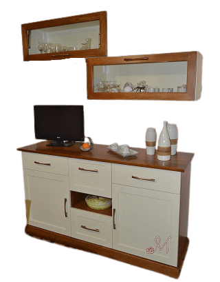 Mobilificio Mirandola Nicola & Cristiano ti propone la madia con pensili realizzata interamente in legno massello noce tanganika, proposta nella combinazioni di due colori: ciliegio e avorio può essere rifinita anche in altre varianti.