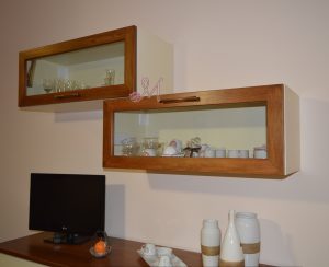 Composizione pensili: H 35 L 100 P 35 cm – Nr. 2 vasistas con braccetti e camar per fissarsi al muro – completi di vetro.