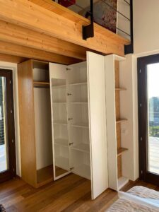 ART. 4019 – ARMADIO MODERNO CON ANGOLO APERTO IN LEGNO MASSELLO