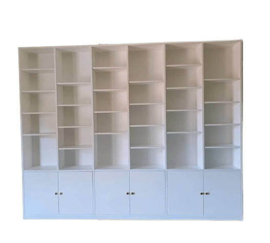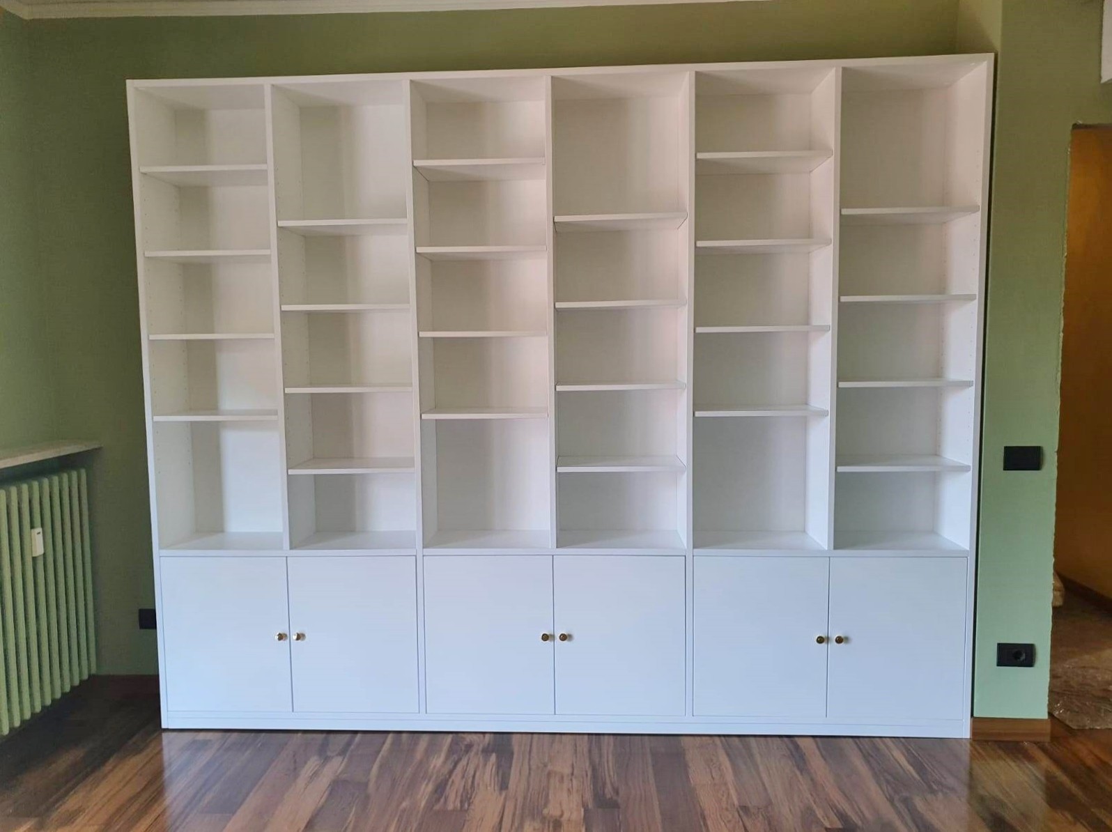 Libreria in legno massello bianca con ante – Su misura 300 cm