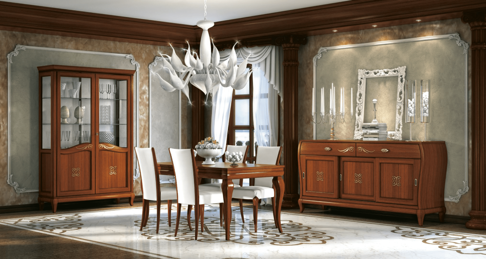 Lasciati conquistare dalla sala da pranzo classica noce in legno massello: passione per il legno, prodotti artigianali di alta qualità e design inimitabile. Fatti travolgere dal mondo di
