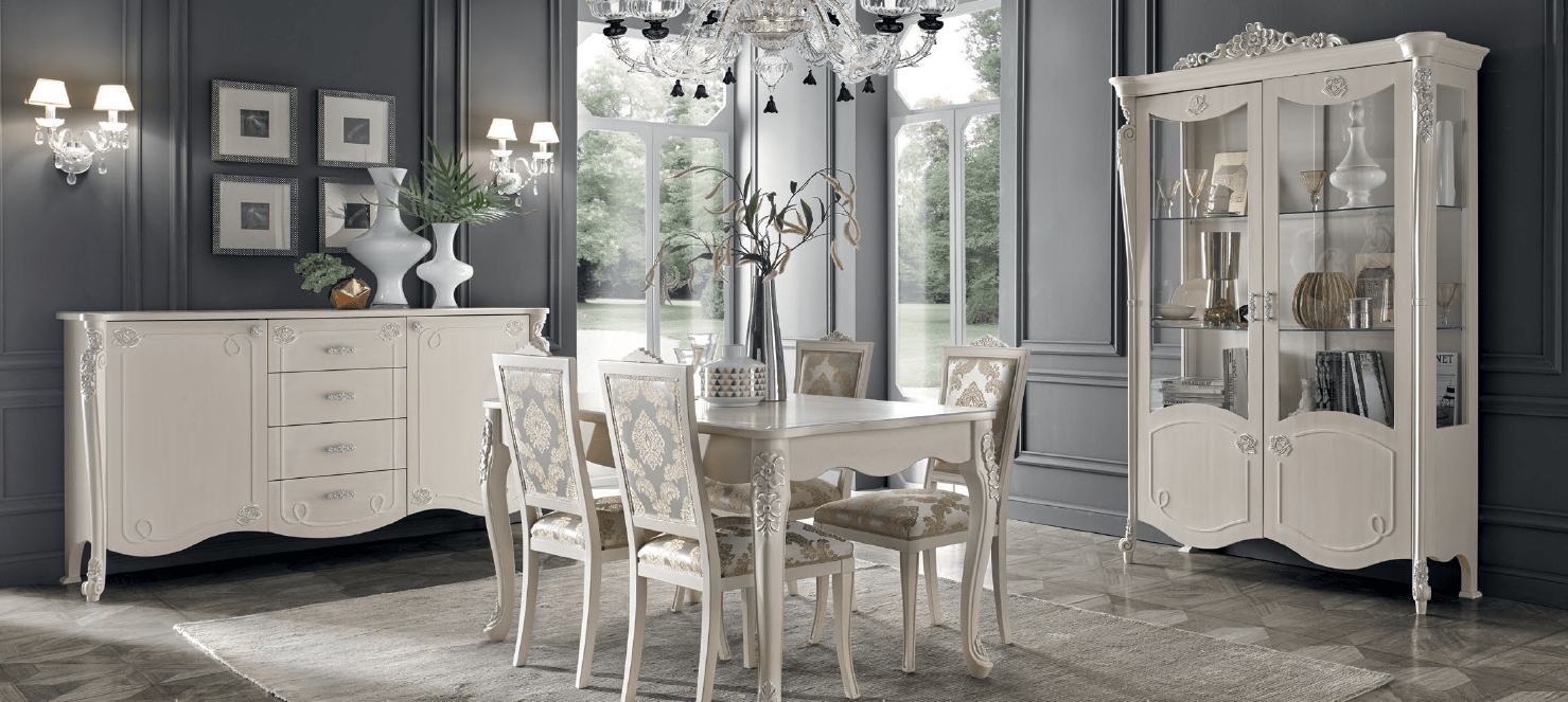 Scopri ora online la sala da pranzo Luigi XVI moderna in legno massello: