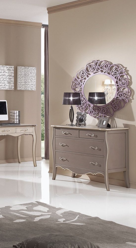 Finitura di colore e maniglia a scelta del cliente! - Il comò riprende la linea curvata della camera, ed è dotato di nr.2 cassettoni e nr..2 cassetti più piccolini,