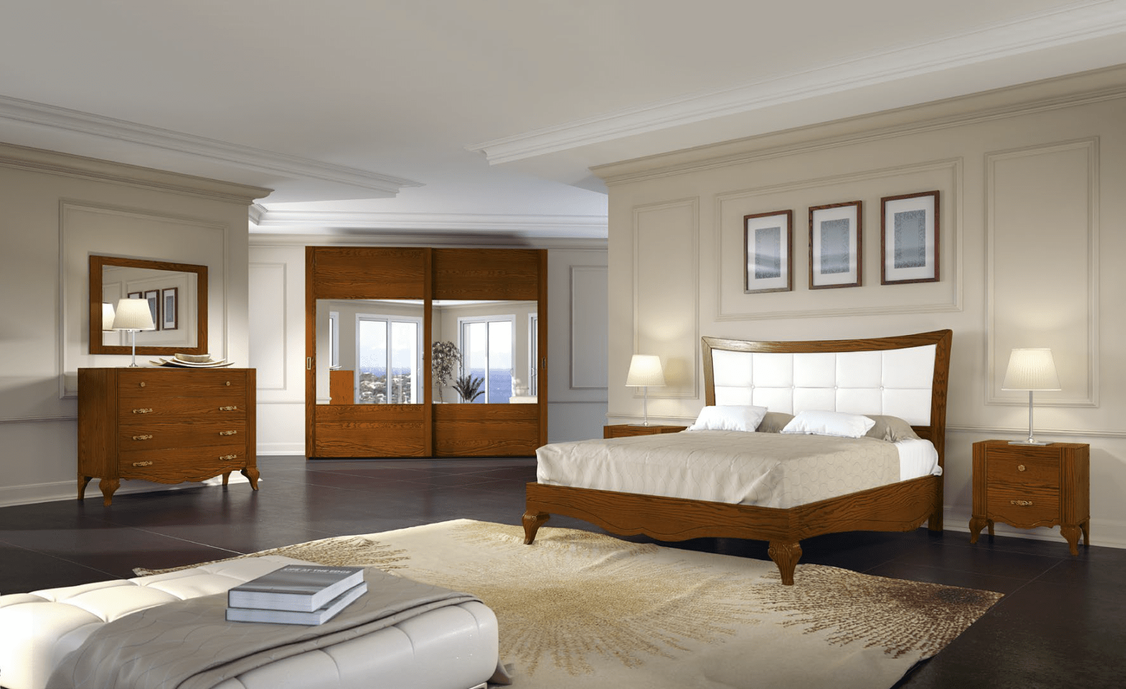 La camera da letto classica noce si sviluppa