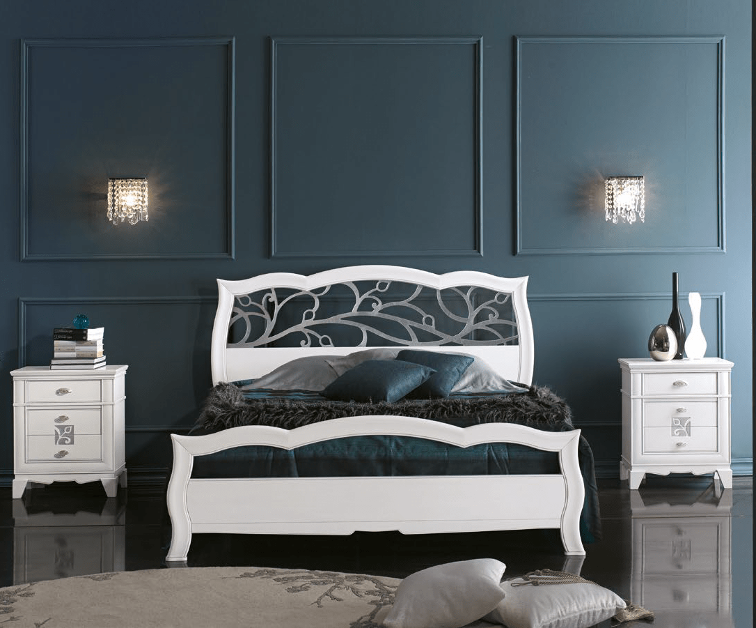 letto matrimoniale classico bianco, letto matrimoniale con testata lavorata, letto classico con tstata traforata, letto matrimoniale legno massello, letto matrimoniale online
