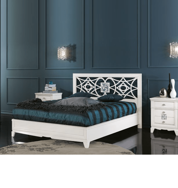 letto matrimoniale bianco classico con testata traforata, letto matrimoniale in legno con testata legno, letto matrimoniale con piedini, letto matrimoniale con contenitore rialzato