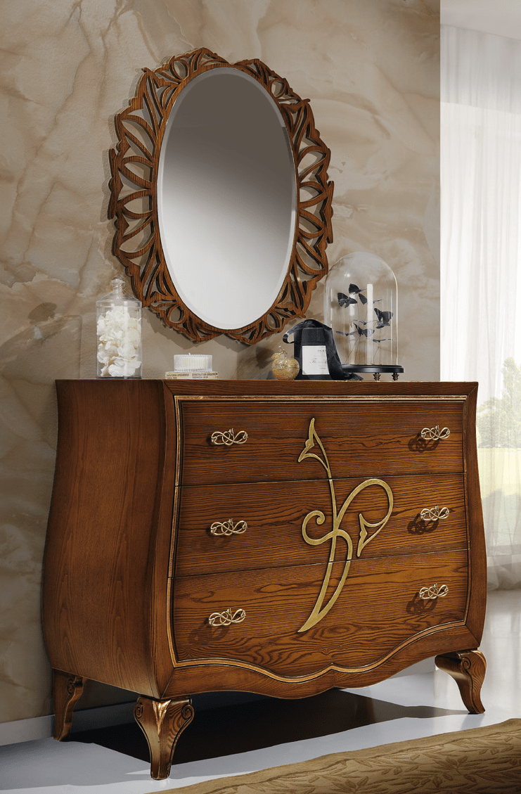comò barocco moderno, comò barocco noce, comò barocco noce e oro, comò classico italiano