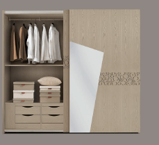 - l’armadio è dotato di una cassettiera interna e di ante con specchio