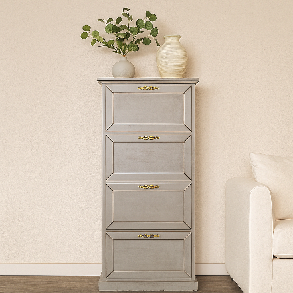 Scarpiera Classica in Legno Massello per Ingresso con 4 Ribalte