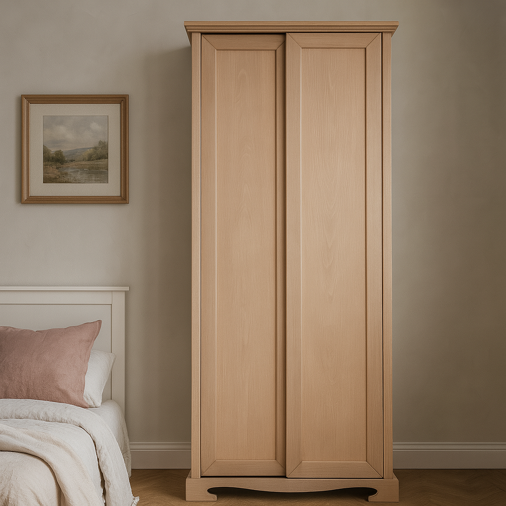 Le ante scorrevoli rendono questo mobile perfetto anche per corridoi o spazi più stretti. La struttura in legno massello, unita alla cura artigianale per i dettagli, lo rende un arredo durevole e di pregio, perfettamente inseribile in ambienti di classe.
